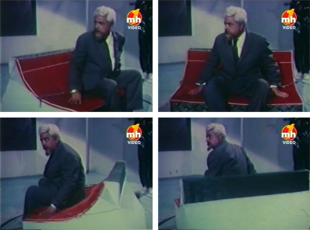 As Rajesh tries to figure out where Dr. Sharma has disappeared to, and who is responsible, Sharma reaches Dr. Chang’s lair in Rome. Chang tries first to woo him into cooperating by seating Sharma on a bench equipped with chutes at each end that awkwardly support a pair of scantily clad firangis (they don’t slide down so much as they are forced to propel themselves, since whatever cheap material was used to make them isn’t really that slippery).