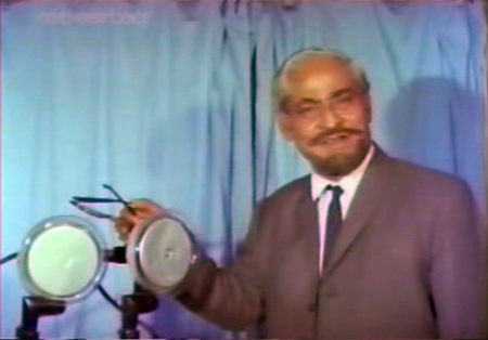 Rakesh and his partner Ramesh (IS Johar) are assigned to the case (possible conflict of interest notwithstanding) by the head of CID (Hiralal). He informs them that Sheela was a friend of Renu, the daughter of a certain Professor Das (Bipin Gupta), who we now learn has just invented a remote-controlled weapon powered by sound waves. Das is a kindly man and a patriot; he proudly announces his new invention as a significant boon for India’s defense.