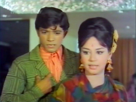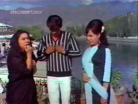 I have never seen Joy Mukherjee past his early 60s movies, wonder how he looked like in the 70s. Helen in the Kashmiri outfit is looking amazing. My first thought after seeing that screenshot was of Sharmila in Kashmir Ki Kali.