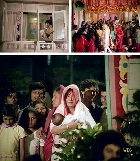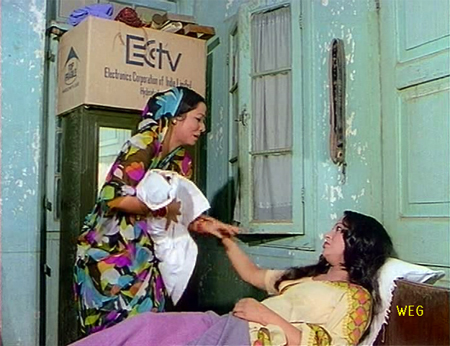 The woman’s name is Sonia (Sonia Sahni=more trouble ahead) and she tells Sita that she is unwed and pregnant. Sita has the brilliant idea of taking Sonia’s baby when it is born and passing it off as her own; when Sonia agrees, Sita tells a joyful Teja that she is pregnant. One of the many things I can somehow forgive Manmohan Desai for (and Salim-Javed too, who wrote the script and probably squabbled with him all the way through it) is how he blithely glosses over things like our need to understand how a successful businessman can be fooled for nine whole months by his not-actually-pregnant wife.