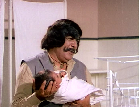 Teja and Sita enjoy a few brief days of happiness with young Shankar and their new son/nephew, but of course nothing is as it really seems. Sonia, it turns out, is the sister of Laxmidas and wife to the hulking Tony (Dev Kumar=Lurch), who is also of course their son’s father; Laxmidas has contrived an elaborate plot to separate Sita from Teja and insinuate the three of them into Teja’s life and then his fortune.