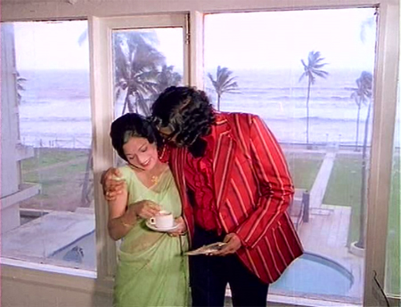 Randhir is cute in this—he’s not a good romantic hero, but he’s a lot of fun and isn’t supposed to be really romantic in this. I love his faux drunk song too…