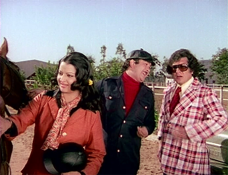 Sunder (now Randhir Kapoor=pudgy!) has grown up with Sita and Khan and he loves horses. He meets Pinky Memsaab (Yogeeta Bali=pudgy!) when he rescues her from a particularly frisky horse that she has been goaded into riding by her wannabe-boyfriend Kiran (Roopesh Kumar=nasty).
