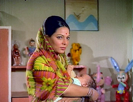 Teja (Rehman=yummy) is a wealthy businessman living with his wife Sita (Indrani Mukherjee=tears ahead) and much younger brother Shankar (who appears to be about ten or so to my not-knowledgeable eyes). Sita has had difficulty conceiving and Teja has confided their sorrow to his business manager Laxmidas (Jeevan=trouble ahead!). At the local temple, Sita regularly prays for a baby; one day as she takes her leave a young woman next to her tries to take poison, and Sita stops her.