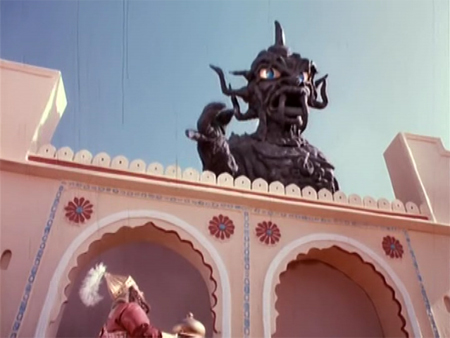 But better late than never, especially to a party like this one. Beyond the endless (and largely nonchalent) WTF-ery there is a lot going on, much of it possibly unintended but tremendously engaging nonetheless. Hacking my way through the dense plot I spot references to the legend of King Arthur, Disney’s Sleeping Beauty, the Bible, Beastmaster, Alice In Wonderland, William Faulkner and so much more. I revel in Amitabh’s recyled outfit from Shahenshah and Rajasthan’s gorgeous Amber Fort. Best of all, I am led to ponder issues like “What is the lifespan of a dolphin, anyway?” and “What’s the point of having a magic talisman that turns into an elephant if you never use it?”
