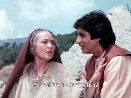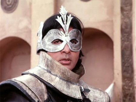 But better late than never, especially to a party like this one. Beyond the endless (and largely nonchalent) WTF-ery there is a lot going on, much of it possibly unintended but tremendously engaging nonetheless. Hacking my way through the dense plot I spot references to the legend of King Arthur, Disney’s Sleeping Beauty, the Bible, Beastmaster, Alice In Wonderland, William Faulkner and so much more. I revel in Amitabh’s recyled outfit from Shahenshah and Rajasthan’s gorgeous Amber Fort. Best of all, I am led to ponder issues like “What is the lifespan of a dolphin, anyway?” and “What’s the point of having a magic talisman that turns into an elephant if you never use it?”