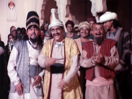 And the film is a treat for those like me who love the “unsung” of Hindi cinema. Rajendranath and Narendranath appear fleetingly as citizens of Bahrestan (who is the snaggle-toothed guy next to Rajendranath? He is so familiar):
