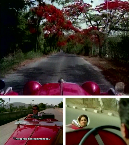 [On a side note, one of my favorite car songs of all time is “Baharon Ki Baraat,” beautifully picturized on Rajesh in his sporty little red roadster driving along a road flanked by what we in Africa called flame trees, or flamboyants (not sure what they are called in India) with his dreams for the future peering at him from his rear view mirrors. It’s lovely!]