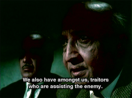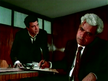 Rajesh is arrested shortly thereafter and the news splashed in the papers. But Mr. Roy shows up again in the jail, accompanied by two men named DeMello (Anwar Hussain) and Shrivistava (?). He tells Rajesh that his visit was a test of Rajesh’s loyalty, and that they need him to get to the bottom of Sharma’s murder—committed by some enemy of India. They have devised yet another needlessly complicated plan to free Rajesh from imprisonment, in order that he carry this task out undercover.