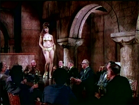 The General and his Chinese henchmen enjoy a tawdry striptease courtesy of this voluptuous lady: