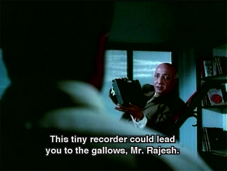 Oh, those halcyon days, when that was a tiny recorder! What does Mr. Roy want in return for his silence? Dr. Sharma’s research, of course! Principled Rajesh refuses to cooperate and Mr. Roy vanishes as mysteriously as he came. Most of the stuff that happens in this movie is needlessly complicated, a hallmark of Brij’s direction, of course, not that I am complaining.