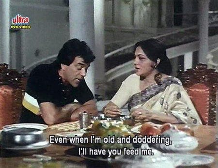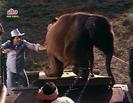 So how and why did I make it through? Well, because I knew from the dvd cover blurb that eventually Dharmendra’s character was going to GET HIS from a mother elephant, and within the first five minutes of the film that became something I really wanted to see.
