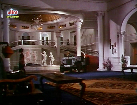 More proof, in case we needed it, of Vijay’s awesome masculinity is the way he drives his jeep in through the front door of his house through the living room and up the ramps which have replaced the staircases to the second floor. Subtle!