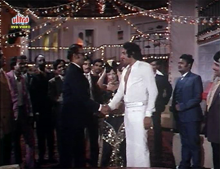 He sells the animals he traps to middleman Gopaldas (Om Prakash). I am not sure what the point of a middleman is when it seems it would be just as easy for circus owners to contact Vijay directly, but never mind. Balraj (a relatively subdued and sartorially underwhelming Ranjeet) and his pretty girlfriend-slash-partner Padma Khanna are trying to cut into Gopaldas’ business, and we get an all too brief side plot whereby Balraj and Padma conspire to steal Vijay’s animals, with no success. They are quickly caught and jailed and we don’t even get a proper song and dance out of it.