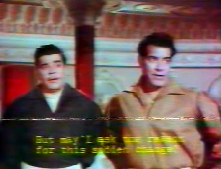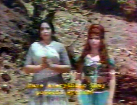 I will tell the story as I managed to piece it together (besides lots of it being missing, and the sound regularly going AWOL, it is very lamely and mostly unintelligibly subtitled—actually, in an unusual twist, the songs are better subbed than the dialogues). In any case, as is usual with Dara Singh’s oeuvre, it’s all about the action (and giant cutlery!).