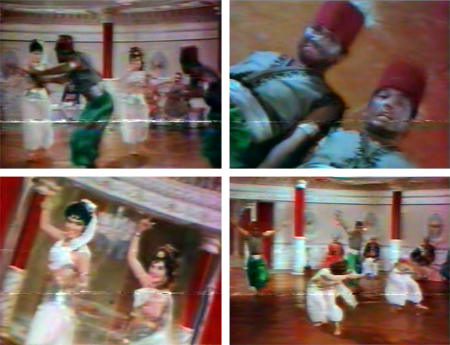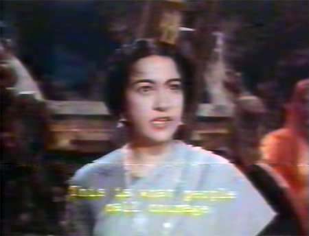 Oh but Vijay can save her! Especially when he’s equipped with a large horsewhip. At least, I guess he rescues Kamini, although that bit is missing too and we are transported to one of the best dance fragments I’ve ever seen. Bela Bose and Madhumati dance convulsively with men in blackface, wearing fezzes and emerald green satin harem pants, and it is FAB. No lyrics, only music, and not very long, sadly, but seriously awesome nonetheless.