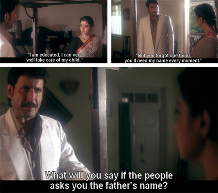 But Bina caves instantly and I roll my eyes as she hands the tiny baby over: such sacrifice! such lofty principles! such a BAD mother! Her landlord—who we recognize as Anand Verma, Nikita’s uncle—protests, but she is adamant. She will not go with her husband, and she will not tarnish her son’s name.
