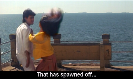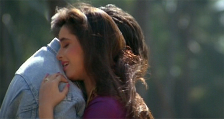 If you can sit through what amounts to a very long and expensive shampoo commercial to find out, watch Afsana Pyar Ke. I don’t recommend that you do, though. The plot is dumb, the characters cartoonish, and the messages confused and stupid. Aamir and Neelam have next to no chemistry at all, possibly because Neelam spends most of her time onscreen with her back or profile to the camera in order to give us an optimal view of her crowning glory.