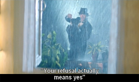Raj of course falls in love with Nikita as she is falling in love with him, but she discovers the bet he’d made with Vikram and it takes a long long time, with much pouting and hair-flinging on her part and lots of angst and moping on his, to make up. We are flogged in the interim with really bad songs (Bappida) and shenanigans like this: