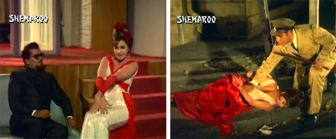 Another thing in this movie puzzled me: why was Helen not cast as the lead actress here instead of Madhumati? Surely she and DS would have made a more sizzling couple than him and Madhumati/Rajshree. Instead she was murdered early in the film just like in countless other movies she was cast in to suffer a tragic death( TEESRI MANZIL, WO KAUN THI?).