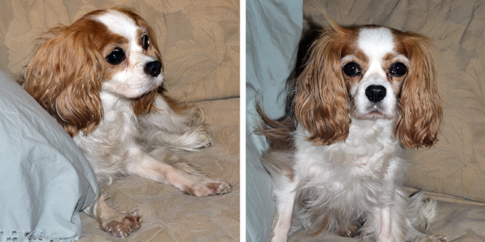 So, although I feel a *little* bit like a widow who has gotten remarried about a week later, I have found myself another dog. I am also pretty sure for several reasons that I’ll keep to myself (you’re welcome) that my Dad and Gemma picked her out for me. She is an 8-year-old Cavalier—the same breed and coloring as Gemma was—who has had a very difficult life at the hands of so-called “human beings.”