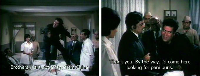 The mental hospital is populated by character actors and comedians, and is a great deal of fun if a little over-the-top wacky sometimes. The first order of business is for the hospital doctors to agree that Sujit is insane and to inform the court of their decision. Sujit has very little trouble convincing most of them that he is indeed mad.