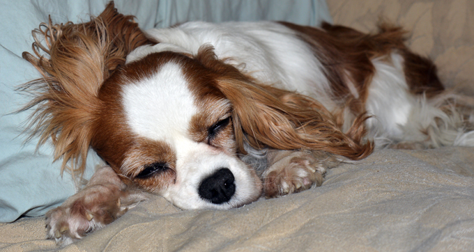 So, although I feel a *little* bit like a widow who has gotten remarried about a week later, I have found myself another dog. I am also pretty sure for several reasons that I’ll keep to myself (you’re welcome) that my Dad and Gemma picked her out for me. She is an 8-year-old Cavalier—the same breed and coloring as Gemma was—who has had a very difficult life at the hands of so-called “human beings.”