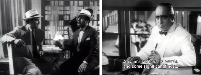 She follows her father as he goes to meet his henchmen, and they capture her as Shivdas is shot. Hearing the shot, Shyam rushes to the scene and Shivdas gasps out a request for water. When Shyam returns with the water Shivdas is gone, only to show up later in Shyam’s bathroom—dead. Lata is stricken both by her father’s death and her cousin’s disappearance and she is quick to believe the police when they arrest Shyam for the murder.