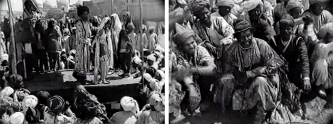 He sets off alone across the desert after her. Selima has been taken to the marketplace in Al Kalab, where she is dressed up in fine clothes and put up for sale. The market scenes are lots of fun: dancing girls, a whirling dervish and a performing monkey, in addition to the slave auction. Shiraz arrives just as the auction is beginning and tries desperately to convince the crowd that Selima is not a slave, but he fails miserably and she is sold to the representatives of Prince Khurram (Charu Roy), heir to the throne of India.