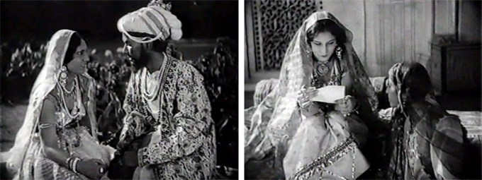 Back at the palace, Prince Khurram chastises a trusted courtier whose daughter Dalia is spreading rumors about her impending marriage with the Prince. The courtier in turn scolds Dalia (Seeta Devi)—but to no avail.