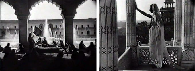To her dismay, Dalia’s maidservant brings her news of Prince Khurram’s intense interest in the slave girl Selima. Shiraz manages to slip a note he has written for Selima to this same maidservant as she passes by a window in the fort walls. Prince Khurram is now romancing Selima in a garden and it’s clear that love has blossomed, although she refuses his more pressing advances gently. He informs her regretfully that he cannot marry her because the law forbids him to marry anyone not of noble birth.