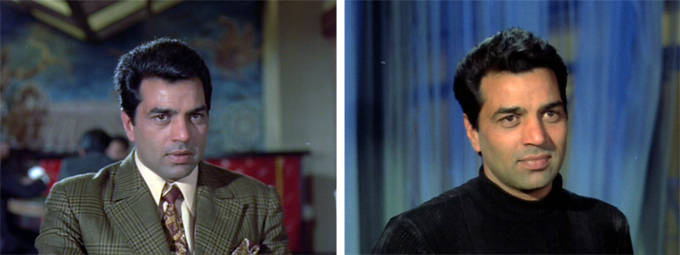 Dharmendra is burdened in this movie by a spiky-mullet wig which causes him to resemble one of the Bay City Rollers.