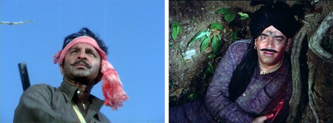 Ranjeet is given the loot to take home and rides off by himself. Ajit and Sarju ride another way with the rest of the dacoits and are soon surrounded by the police. We discover that the traitor inside the gang is none other than Sarju’s brother Mahavir (Ram Mohan). After a ferocious gun battle, some of Ajit’s men are killed and some escape, including Sarju. Ajit himself is shot in the arm and manages to escape on foot, with police dogs chasing him.