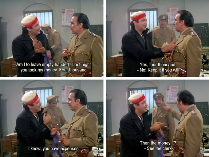 I love little moments like that. I wonder if any policeman in the cinema audience changed his bribing ways as a result of the fine example Inspector Joshi sets?