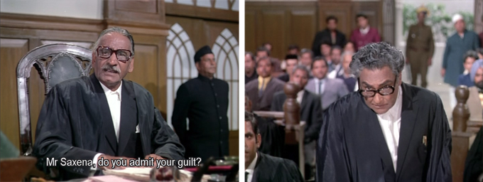 Anyway, with Banke off the list and still convinced it was an “inside job”, the police soon find a new suspect: one of the few friends Ranjit Singh had, a lawyer named Suresh Saxena (Sanjay Khan). But he swears that it was one of the few nights where he didn’t come to play chess with Ranjit because he was busy elsewhere, although he is visibly shaken when Rani tells him that there was a witness who saw a man leaving the house.