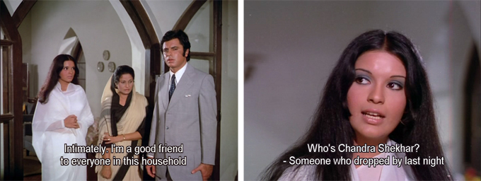 Nearby stands his wife Rani (Zeenat Aman) with a pistol in her hand; she immediately confesses to the crime and asks Chandra Shekhar (the reckless driver’s name) to call the police.