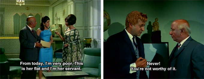 PS I love the availability of the tribal-lady’s costume in Paris in 1967 – I believe Sharmila is here specifically dressing as “a maid.”