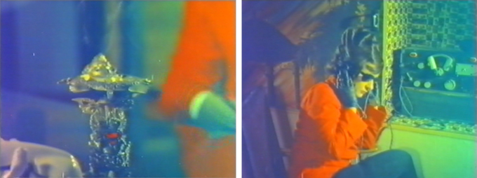 Agent Joy checks into his hotel room, which is crawling with bugs and very shabby. He is not pleased. He goes to meet Mr. Darko, who surreptiously (except for the obvious blinking red light in the ashtray on the desk) records their conversation. Rosa listens in, now wearing a wedding cake on her head and dark glasses I suppose to shield her eyes from all the flashing buttons.