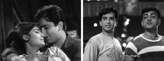 There were enough things to get me through it: Dara’s ruffled sea dacoit shirts, Prithviraj Kapoor, dancer Kammo as a female sea dacoit, lots of sparkle and terrible wigs, and lovely songs including a Bela Bose dance aboard a sea dacoit ship. Plus the subtitles, inept as they are, are often hilarious. And when I tell you that Memsaab favorites Hiralal, Jeevan and Rajan Haksar vigorously ply their histrionic powers you will understand that subtlety is no hallmark of the acting either (yes, I know I am putting that in the “plus” column, it needs the support).