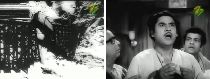 After a LOT of hemming and hawing and tiresome completely unnecessary machinations on Pritam’s part, they finally admit their love for one another. Then Neena receives a telegram from her father (Shivraj) asking her to come back to Poona, and on the way there her train derails and crashes into a gorge. Neena’s name appears on the list of those killed and we are treated to Kishore Nahiin Face.