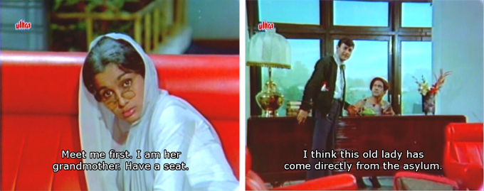 I’m very sorry to disappoint you but I hate Asha P with a vim and a verve I usually reserve for Rajendra Kumar, Biswajeet, Manoj Kumar and their ilk. Not to say that I do not watch their movies, but there has to be something else to pull me in than to only watch their awesomeness (gak!).