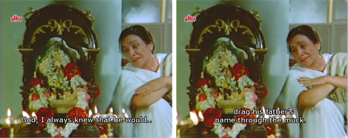 The one character that completely puzzled me out was the Mother and I bet a million that in no other Hindi movie, old or recent, has any mother been as presumptuous and callous towards her own offspring (except for step-children, of course!).