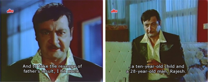 At this stage everything began to unravel for me. Absolutely nobody believes in Rajesh—who has never been anything but kind, dutiful and generous towards everyone—except his sister Chanda. This develops into a bit much of a bhai-bahen “tie me a rakhi” thing and makes me wonder if anyone else in Rajesh’s life has any brains at all. The police obviously don’t have the capacity to think beyond what’s right in front of them; but I would think the people who love and know him might give him a break, and the fact that they don’t quickly becomes tiresome. I also figure out pretty quickly from here who the true culprit is, but as I said there appear to be scenes missing because it’s never explained how anyone else figures the mystery out—they just suddenly seem to know everything.