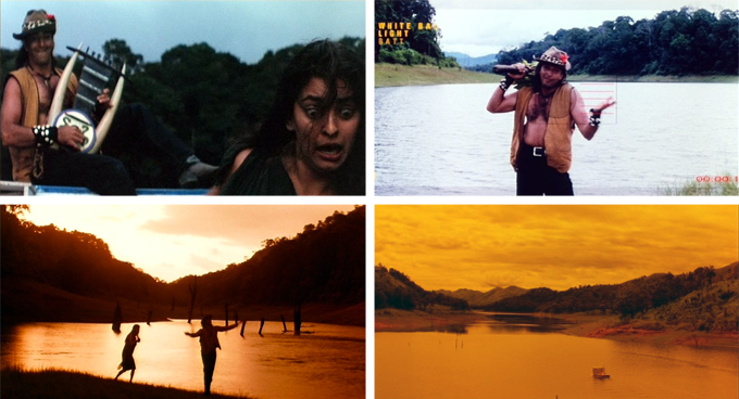 Kishan and Anjali take leave of Kabila (somehow the factory isn’t brought up again) and set off for D’Silva’s and the coast. But Gwana and his men now catch up to them. Luckily, D’Silva’s faith in Kishan has not been misplaced and he rather easily (although Anjali does a fair job of defending herself too, yay!) dispatches first the men and finally Gwana. Before they escape from him, Gwana manages to disable the boat and thus enables our hero-heroine to drift along and continue their romancing.