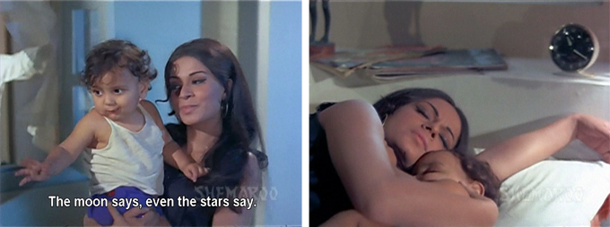 Golu spends a fair amount of time crying and it mostly looks pretty genuine. I worry about him. Rita struggles with her lack of maternal feelings and Navin is absolutely no help at all. But after she calms him down with a wonderful lullaby (“Chanda Mama Bole”) Rita is pretty smitten too. I love that she is allowed to be non-maternal and awkward with the baby, and that chubby little Golu is cute enough for her change of heart to be believable.