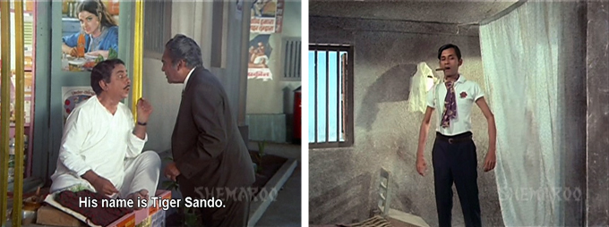 There is still one element of his plan missing, and Mamaji goes to see Panna Tambuli (Sunder), the local paanwala. Panna informs Mamaji that an old enemy of his named Gaffur (Madan Puri) has just been released from jail and is looking to take revenge on Mamaji for putting him there in the first place. Panna has also located Mamaji’s last requirement: a baby. Someone by the name of Tiger Sando is willing to rent his son to the gang for the sum of 100 rupees a week. Mr. Sando is a lot more unprepossessing than his name implies.