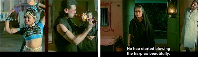 This seemed like bad parenting in Kasam Paida Karne Wale Ki, and it seems like bad parenting now too. It seems Dharma agrees with me. As Parvati broods, Dharma treats Suraj with kindness and affection, teaching him blacksmithing skills although it’s soon clear that Suraj’s calling is the same as his real father’s. I will tell you this, if you like been (subtitled as “harp” for some reason) music (I do! I do!) this movie is chock full of it. He grows up to be Jackie Shroff and Kajri grows up to be the very interesting Varsha Usgaonkar (according to the credits, this is her debut film). Kajri clearly loves Suraj and dances when he plays his father’s harp, but he is oblivious to her feelings and treats her indulgently as a sister.