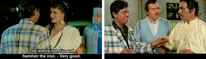 I think by this time Prem Chopra had moved on to comedy-villain roles. I remember seeing him in at least a couple of movies of the 80s where he played a similar “villain but cowardly and somewhat funny” character. Maybe he decided to leave the core villain position to Amrish and Sadashiv.