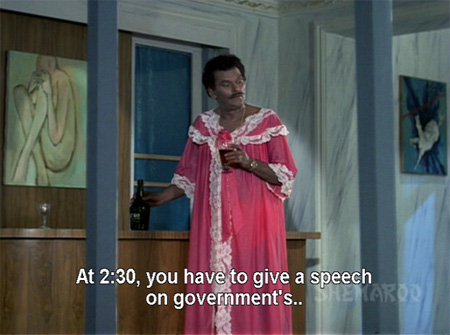 I am always happy to see Veena and ecstatic to see Tiwari; that kurta almost rivals the pink nightie, although he looks very thin. I worry that he was sick and he sadly never appears again in this movie.