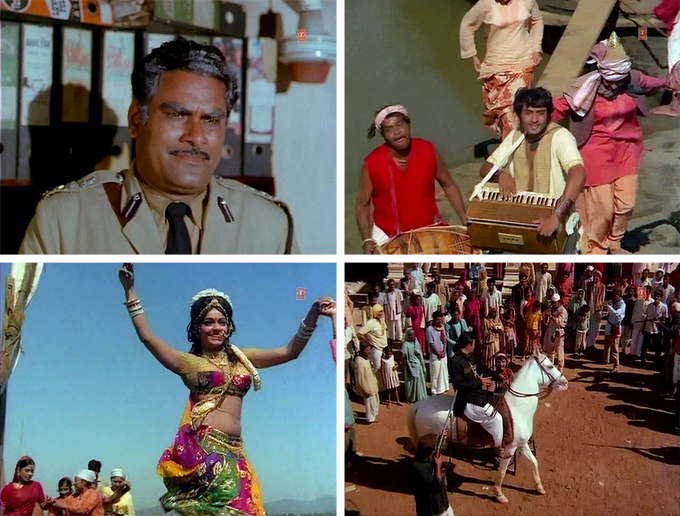 Back in the present, the police (led by Kedar Sehgal, a long-standing “that guy” recently identified by readers Quezar and Mool Narain Singh) decide to trap Raja Thakur and his men at the local temple when he goes there to worship. Luckily for Raja the police in this film aren’t any smarter than the ones in other seventies movies and are easily outwitted. It’s also an excellent excuse for another song and dance, this time courtesy of Jayshree T. I’m also thrilled to see a young and very fine RANJEET! and Raja’s beautiful well-trained white horse.